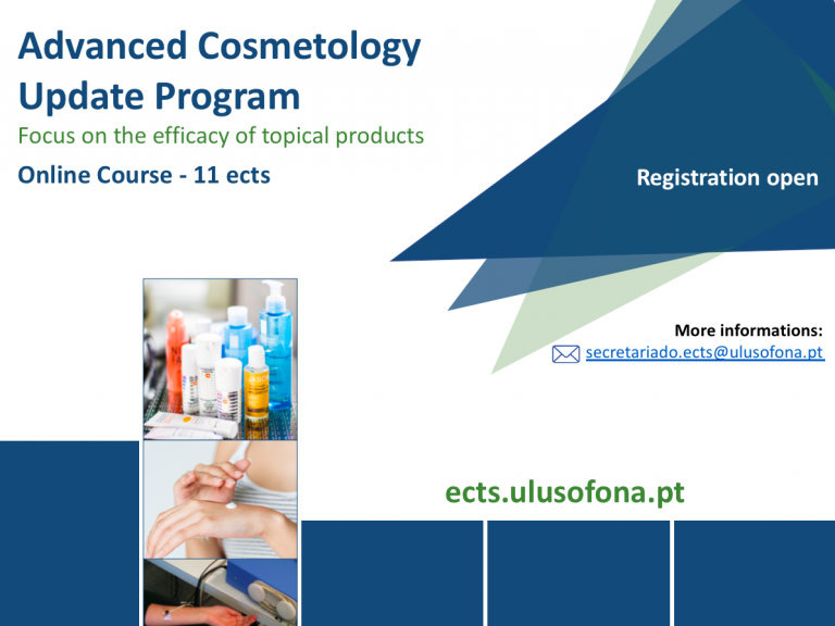 Programa Avançado de Atualização em Cosmetologia (focagem especial na eficácia de produtos tópicos) [+] aqui |