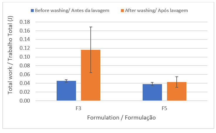 | Figure 5 - Total work to comb the locks before and after the washing step. |