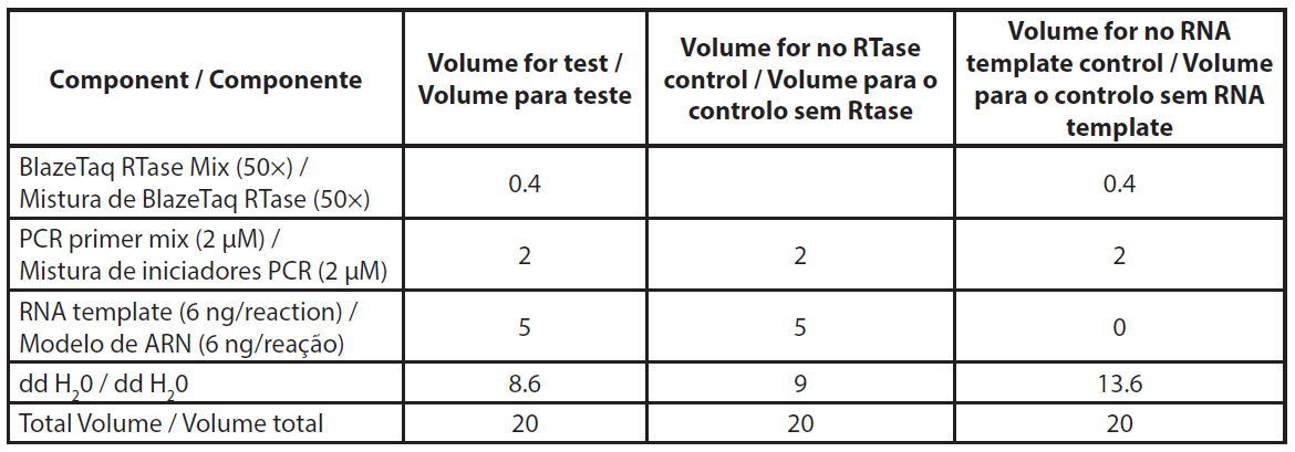 | Tabela 1. Descrição da mistura de reação qRT-PCR. |