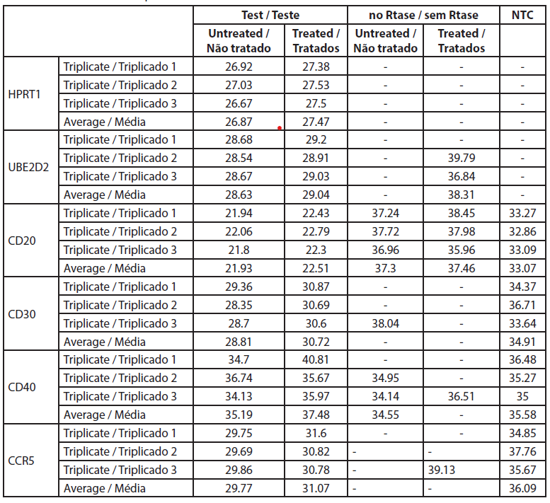 | Tabela 4. Valores Ct da qRT-PCR. |
